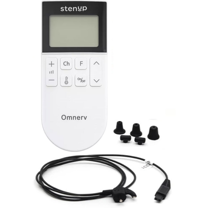 - 1 électrostimulateur StenUp Omnerv intégrant 80 programmes de stimulation TENS et EMS, dont 8 protocoles dédiés à la stimulation vagale. Appareil équipé d’une batterie rechargeable.